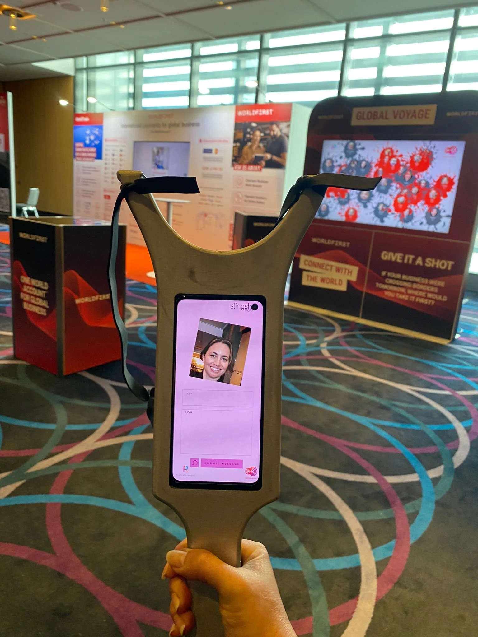 Looking for something unique? Slingshot is an interactive, entertaining digital message board. Guests’ take a selfie and type in a small written message. The message is the answer to the question that is set for the event, typed into the custom designed Slingshot device. This message is then slingshot onto a large digital wall by pulling back on the device triggering a virtual splatter with your message and photo.