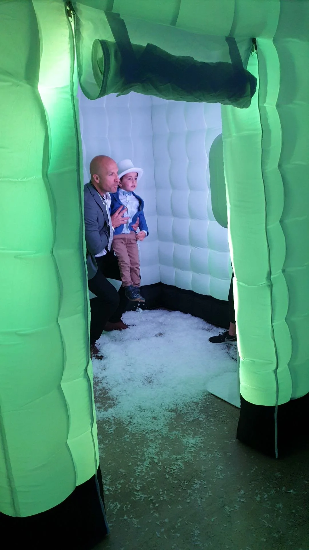 The inflatable booth has LED lights embedded that can change colour – either select your colour for the internal lighting or alternatively have it rotating through all of the colours. Why not transform the booth into an igloo, add snow and create a true winter wonderland? Indoors or outdoors, the Inflatable Photo Booth certainly adds the WOW factor to any event.
