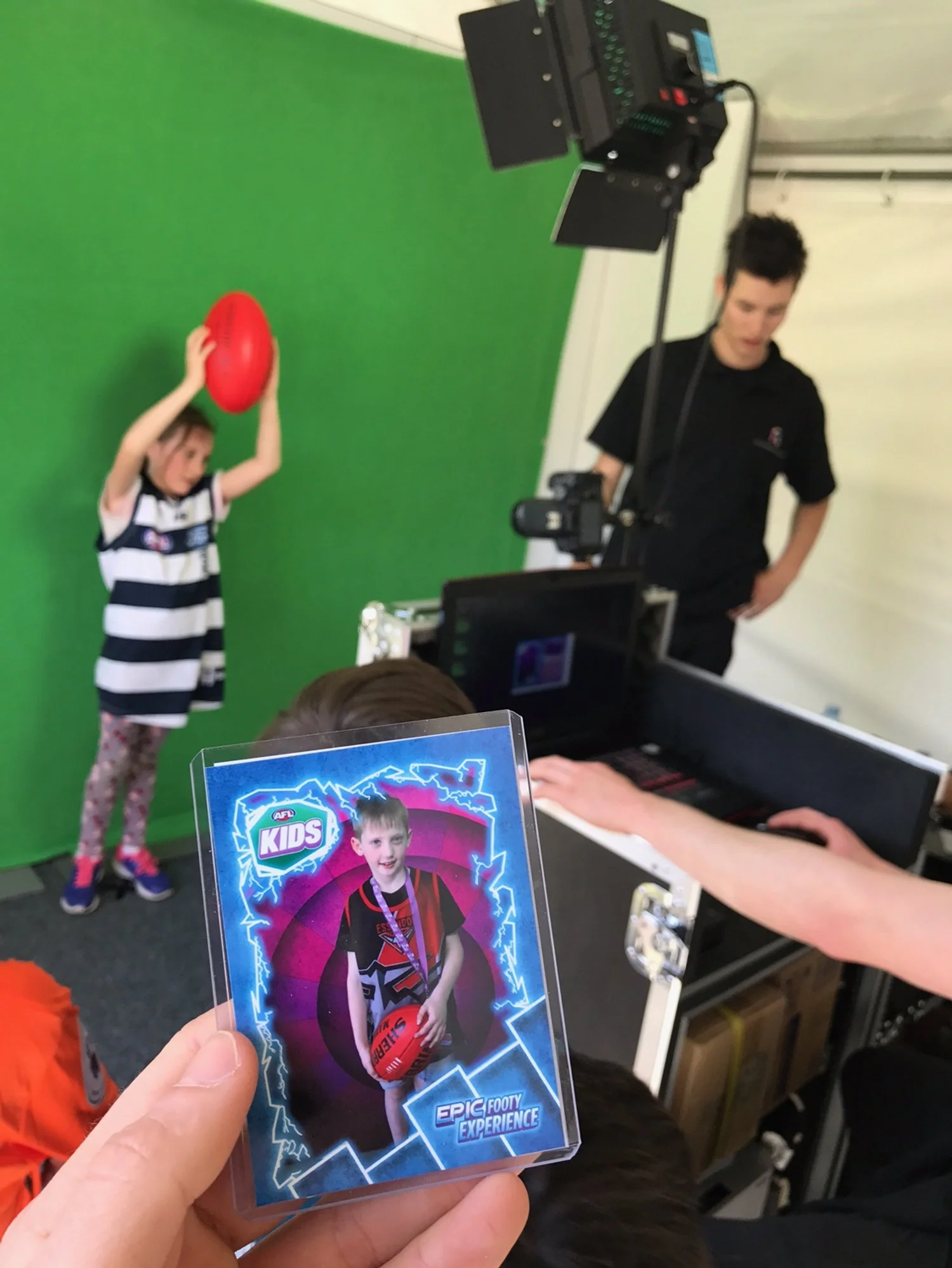 We snap a photo, place it onto the custom designed backdrop, enter in the stats and print it out there and then. A unique party favour that people will be proud to show off.