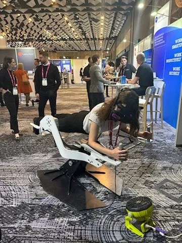FlightMotion VR is used by laying down on the platform and using your whole body to control where you move in the VR world.
